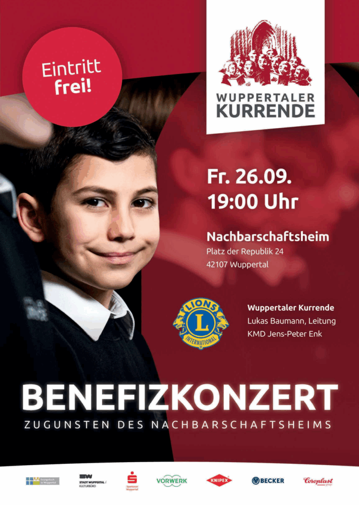 Herzlich willkommen zum Benefizkonzert der Wuppertaler Kurrende in unserem wunderschönen Kirchsaal, organisiert vom Lions Club Bergischer Löwe Wuppertal. Der Eintritt ist frei, Erlöse aus Speis, Trank und Spenden gehen an unsere Angebote als sozialer Träger und gemeinnütziger Verein.