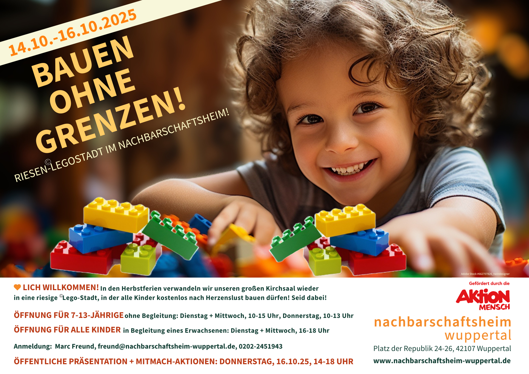 In den Herbstferien verwandeln wir unseren großen Kirchsaal wieder in eine riesige Lego©-Welt, in der alle Kinder kostenlos nach Herzenslust bauen dürfen!